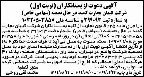 دعوت از بستانکاران شرکت کیهان تجارت کمند
