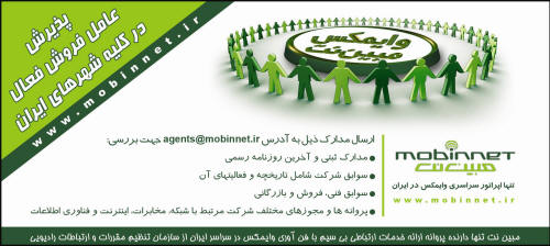 پذیرش عامل فروش مبین نت  پذیرش عامل فروش فعال در کلیه شهرهای ایران  تنها اپراتور سراسری وایمکس در ایران