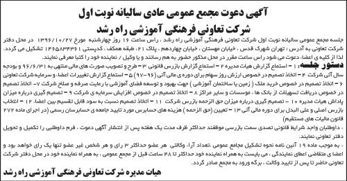 نمونه آگهی دعوت سهامداران آگهی مجمع عمومی