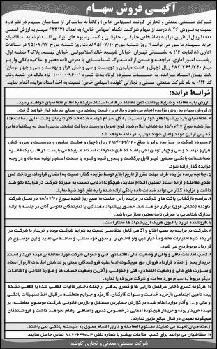 آگهی فروش سهام  شرکت صنعتی معدنی و تجاری کاونده  شرایط مزایده  سهام شرکت تکفام
