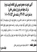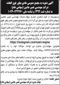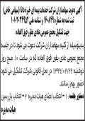 چاپ شده در روزنامه ابرار آگهی دعوت به مجمع عمومی عادی بطور