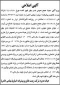 آگهی اصلاحی دعوت به مجمع عمومی چاپ شده در روزنامه ابرار آگهی