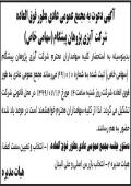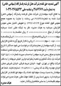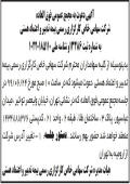 اطلاعیه شرکت مهندسین مشاور شاران چاپ شده در روزنامه ابرار