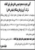 پارس در روزنامه ابرار آگهی دعوت به مجمع عمومی فوق العاده