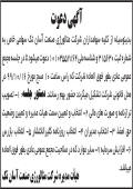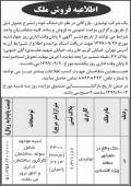 اطلاعیه فروش ملک چاپ شده در روزنامه ابرار اطلاعیه فروش ملک