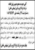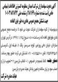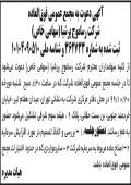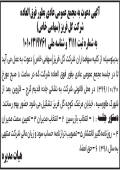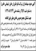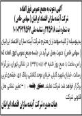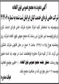 آگهی دعوت جهت تشکیل مجمع عمومی چاپ شده در روزنامه ابرار آگهی