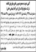 آگهی دعوت به مجمع عمومی عادی بطور فوق العاده شرکت صنایع