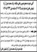 آگهی مجمع سالیانه شرکت صحت عمران آریا چاپ شده در روزنامه