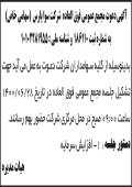 روزنامه ابرار آگهی دعوت به مجمع عمومی عادی بطور فوق العاده