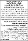 آگهی دعوت به مجامع عمومی انجمن افتا چاپ شده در روزنامه ابرار