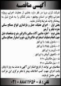 آگهی مزایده ماشین آلات اسقاط شرکت سبز زیور چاپ شده در
