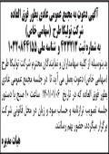 آگهی مجمع عادی بطور فوق العاده شرکت تولیکا طرح در روزنامه