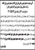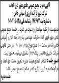 آگهی مجمع سالیانه تعاونی مسکن کارکنان چاپ شده در روزنامه