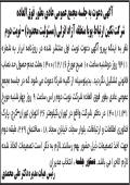 آگهی مجمع عادی نوبت اول شرکت تعاونی چاپ شده در روزنامه ابرار