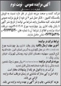 آگهی نوبت دوم مزایده فروش تانکر حمل شیر چاپ شده در روزنامه