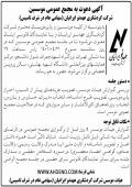 آگهی مجمع موسسین شرکت در شرف تاسیس چاپ شده در روزنامه ابرار