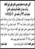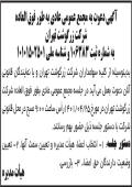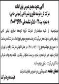 آگهی مجمع سالیانه شرکت فراز زمین پارسیان شرق در روزنامه