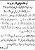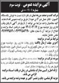 آگهی نوبت سوم مزایده فروش کامیون تانکر حمل شیر در روزنامه