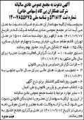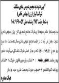 آگهی مجمع سالیانه شرکت سنگ آهن کوه بابا چاپ شده در روزنامه