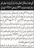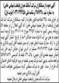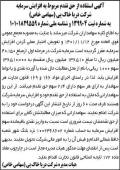 تقدم چاپ شده شرکت فوق در روزنامه ابرار تحت شماره مورخ