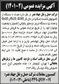 آگهی مزایده کامیونهای کشنده و یخچالی چاپ شده در روزنامه