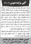 آگهی مزایده فروش دام چاپ شده در روزنامه کثیرالانتشار ابرار