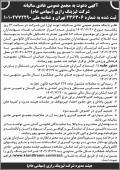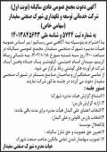 ابرار آگهی نوبت اول مجمع سالیانه شرکت خدماتی شهرک صنعتی