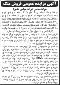 ابرار آگهی مزایده عمومی فروش شش دانگ ملک آگهی مزایده عمومی