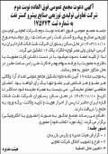 ابرار آگهی نوبت دوم مجمع تعاونی صنایع پیشرو گستر نفت آگهی