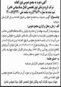 روزنامه ابرار آگهی مجمع شرکت گروه پزشکی فوق تخصصی اقبال مبنا