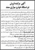 روزنامه ابرار مزایده فروش دو دستگاه خودروی سواری آگهی مزایده