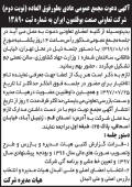 آگهی مجمع عمومی چاپ شده در صفحات روزنامه ابرار به اطلاع