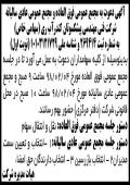 آگهی مجامع عمومی در روزنامه ابرار بدینوسیله از کلیه
