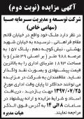 آگهی مزایده نوبت دوم در روزنامه ابرار شرکت توسعه و مدیریت