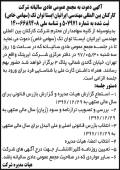 نمونه آگهی دعوت به مجمع صاحبان سهام در روزنامه ابرار