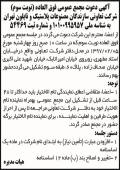 نمونه آگهی تشکیل مجمع عمومی در روزنامه ابرار آگهی دعوت به