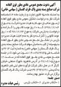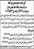 نمونه آگهی مجمع کارخانجات در روزنامه ابرار آگهی دعوت