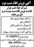 آگهی فروش اقلام دست دوم در روزنامه ابرار شرکت جهاد نصر تهران