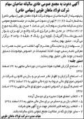 مجمع عمومی عادی سالیانه شرکت تولیدی در روزنامه ابرار