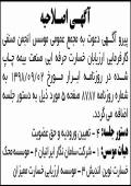 اصلاحیه مجمع عمومی انجمن صنفی در روزنامه ابرار آگهی اصلاحیه