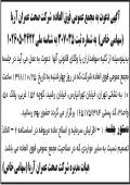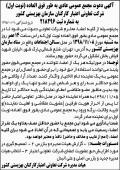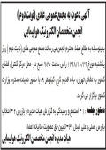 عمران آریا در روزنامه ابرار آگهی دعوت به مجمع عمومی فوق