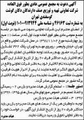 ابرار آگهی دعوت به مجمع عمومی عادی سالیانه شرکت تعاونی