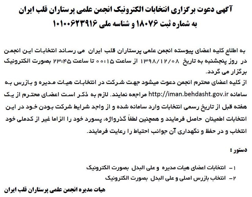 آگهی دعوت برگزاری انتخابات الکترونیک انجمن علمی پرستاران قلب