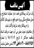 آگهی مناقصه شرکت پیمانکاری در روزنامه ابرار آگهی مناقصه یک