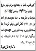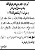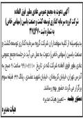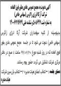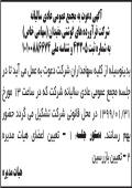 آگهی مجمع عمومی شرکت زرد شمشال چاپ شده در روزنامه ابرار آگهی