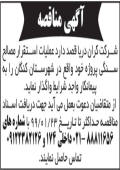 آگهی مناقصه آرماتور بندی و بتن ریزی چاپ شده در روزنامه ابرار