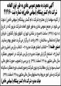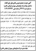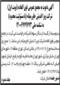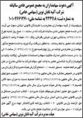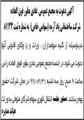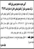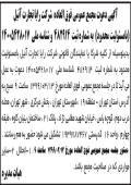 آگهی چاپ شده مجمع عمومی در روزنامه کثیرالانتشار ابرار
