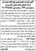 در روزنامه ابرار آگهی دعوت به مجمع عمومی عادی سالیانه صاحبان