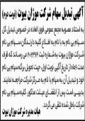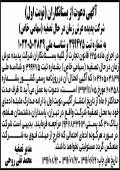 کثیر الانتشار ابرار منتشر و اعلام می دارد آگهی شرکت