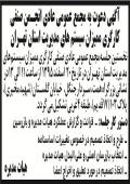 تصفیه دانش فرشی صبح خیز این آگهی به فاصله یک ماه در روزنامه